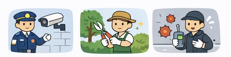 - ●植栽・緑地管理 剪定、施肥、芝刈り、害虫駆除