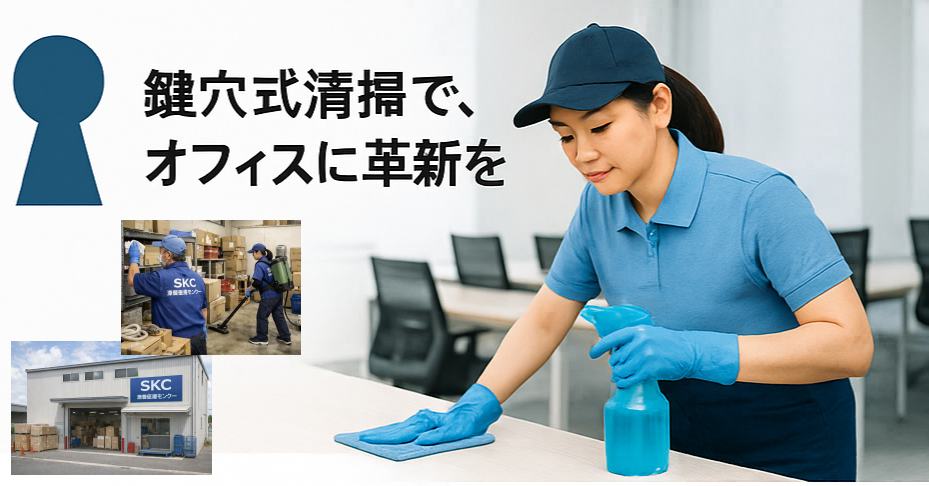- 私たちが提唱する「鍵穴式清掃」とは、普段の清掃では見落とされがちな“鍵穴=細部”まで徹底的に管理する清掃方式です。