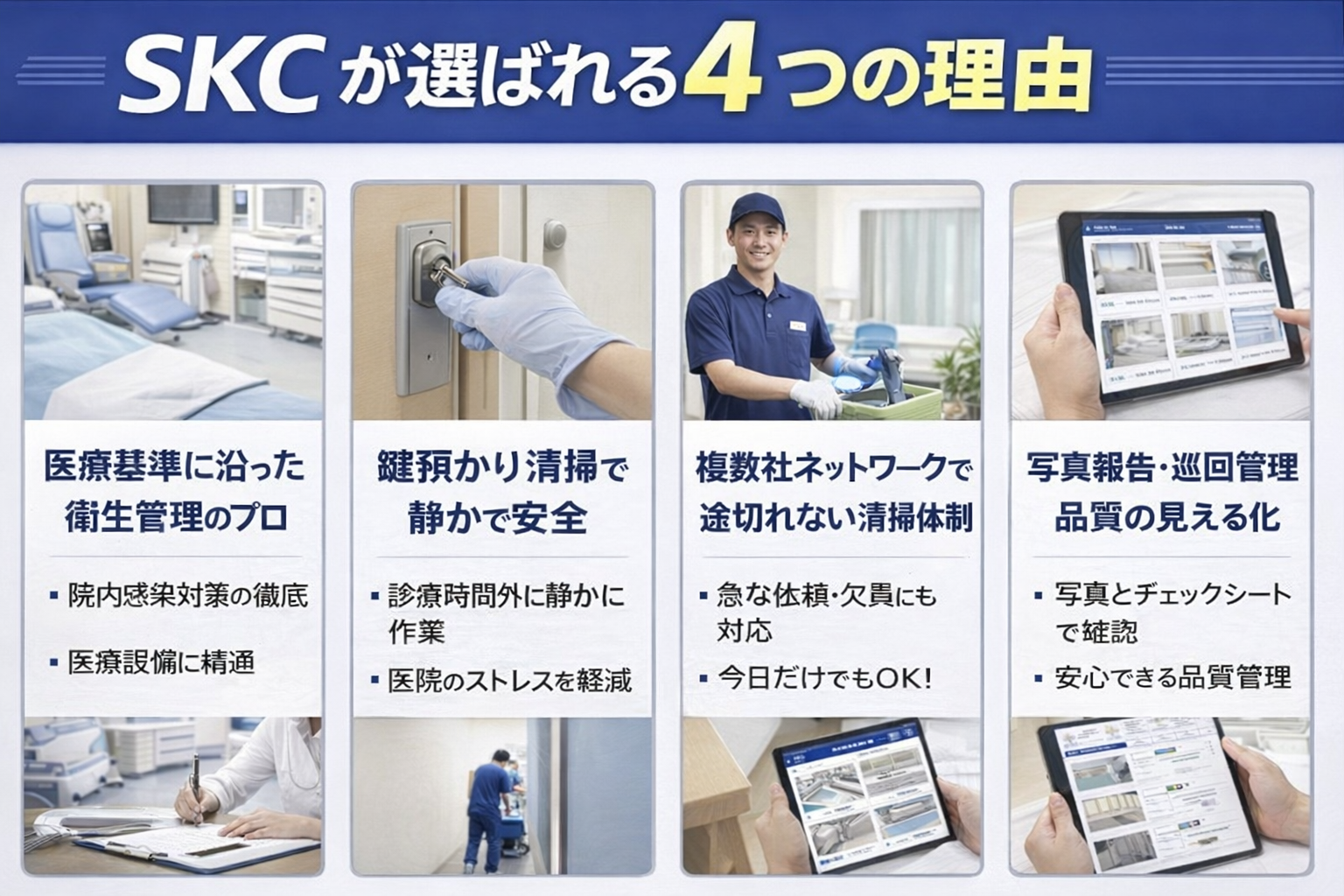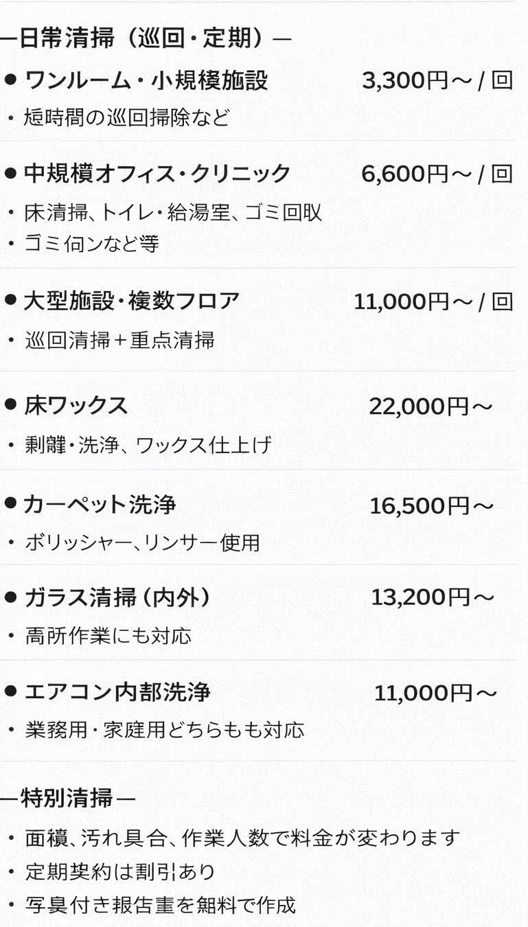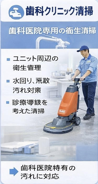 - 院内の衛生環境を維持するための定期的な専門清掃。