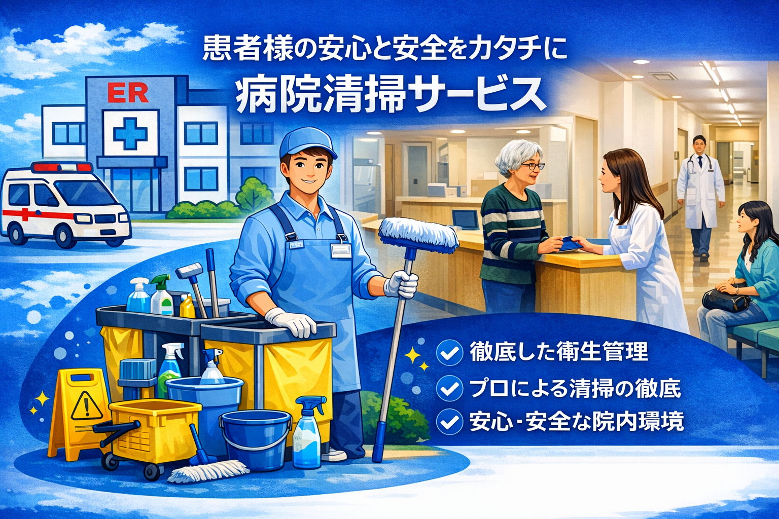 - 患者様が安全かつ快適に医療を受けられる環境を維持するために、毎日行われる清掃活動のことを指します。